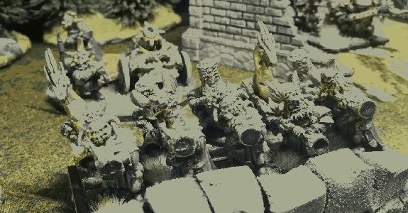 Separated from their brethren in the trials of the Ages of Ruin, the Eastern Dwarves turned to darker means of survival. Though "Infernal" is used to describe these beings and their cruel nature, the term derives from the disastrous creation of the Inferno - a vortex of fire and magic, the genesis of the Wasteland, and the catalyst of the Ninth Age. Unlike their subterranean cousins in the west, they build great stone ziggurats above ground, while their vast, slave-worked mines fuel a technological industry rivalled by few, if any. Their control over much of the trade from the East, combined with devilish weaponry, enables the Infernal Dwarves to stand against the collective loathing of Vetian civilisation.