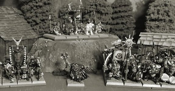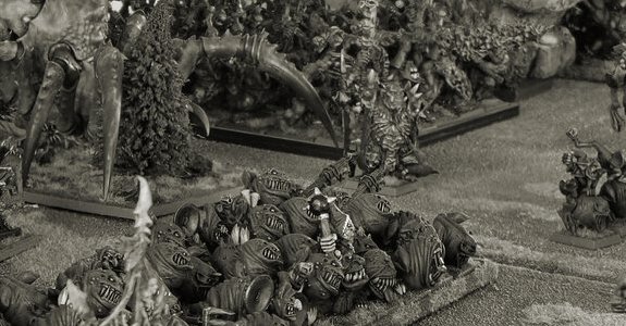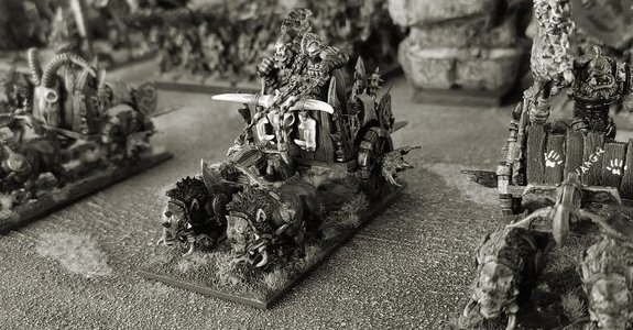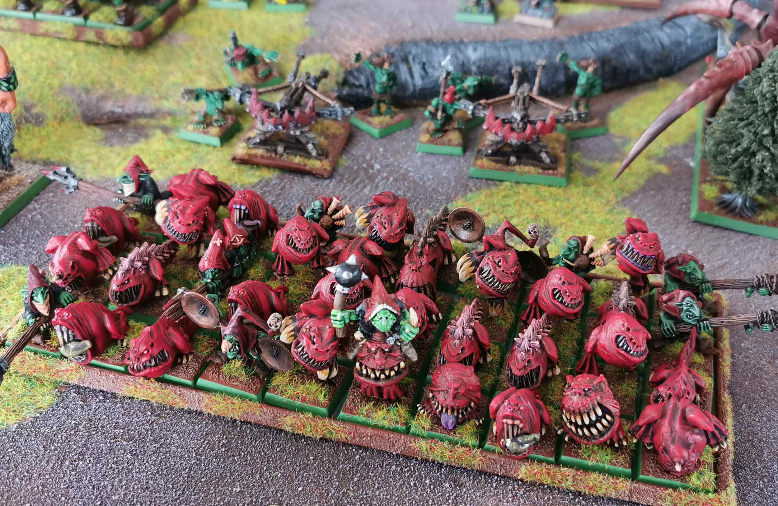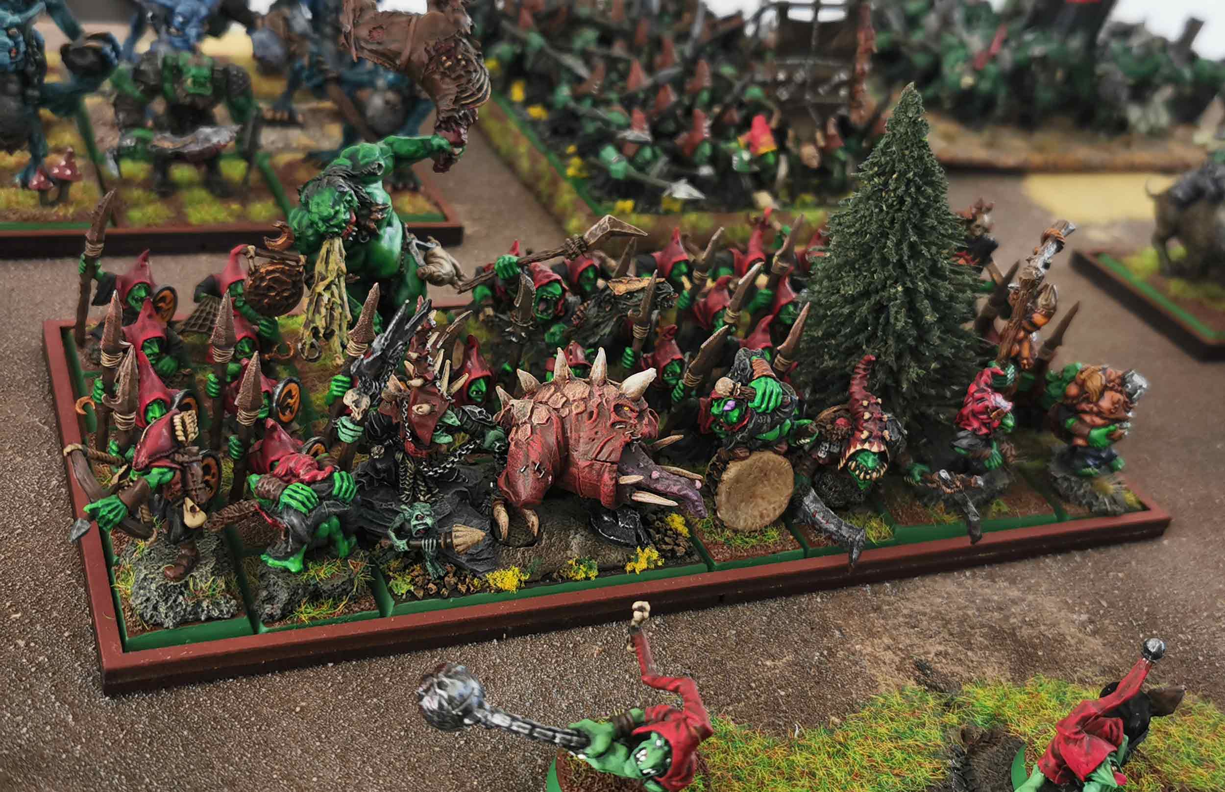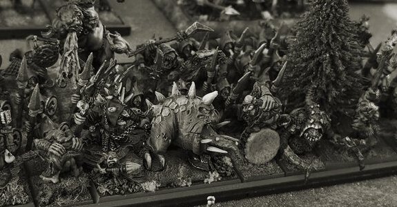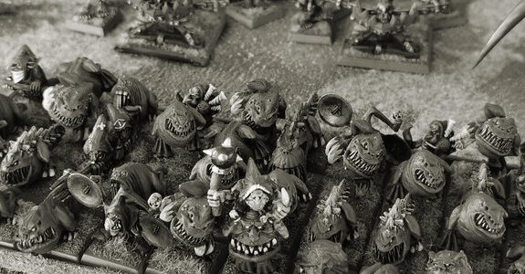 The nomadic orc tribes seem to self-generate periodically in large numbers, and are always on the move. Thanks to unfathomable methods of reproduction and with no fixed encampments, they are like a brushfire, stamped out one minute only to spring up again the next. Trickier and more treacherous than their larger relatives, the mysterious goblins protect their own existence through a complex network of secret enclaves, waging war through a union of cunning tactics, improbable monsters and the use of potent hallucinogenic substances.