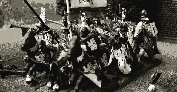 The thunder of hooves, the clink of mail, the sounding of horns: a great cacophony accompanies an army of knights riding to war. Yet steel and sinew are nothing without valour. These noble fighters crusade for faith, for virtue, for their beloved Lady - yet most of all, for the honour of their home, the Kingdom of Equitaine.